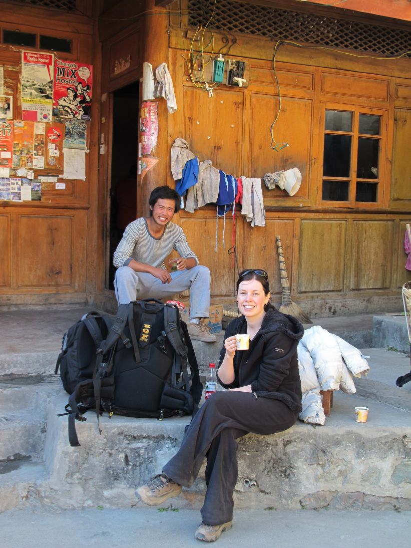 Then he stepped aside and we were in! We had directions from three different sources that were all pretty consistent so we started walking down the road (which is called the low road, and is where all the tourists take the mini bus down to the highlight of the gorge, Tiger Leaping Stone). We stopped briefly at a hostel called Janes, which has a reputation for being a very helpful starting point for hikers.