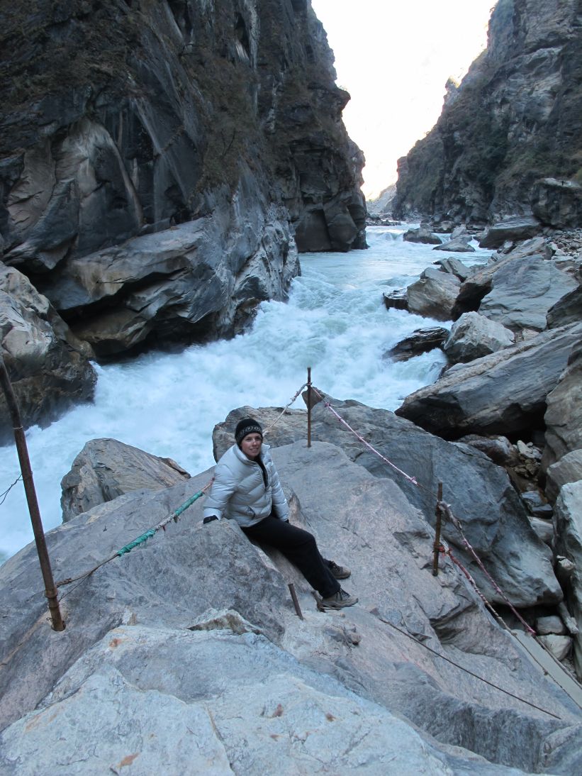 The next morning, we made our way down to the bottom of the gorge to check out the stone from where a tiger supposedly leapt to the other side of the gorge (hence the name). After a couple of false starts, we found the actual trail and paid our 10 yuan to a toothless old lady whose family had restored the path.