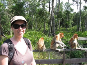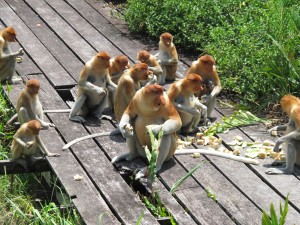 …and yes, they are ugly (it’s the giant noses) and fat, and apparently have a flatulence problem due to their diet. Oh, and they have pretty much constant erections (I realised that all the pictures you see of them have their thigh at a certain angle to cover this embarrassment). But they were oddly compelling, and we spent all day going between feeding sessions and enjoying their crazy antics (Neen – I missed you with your appreciation of “look at the baaaaby”).