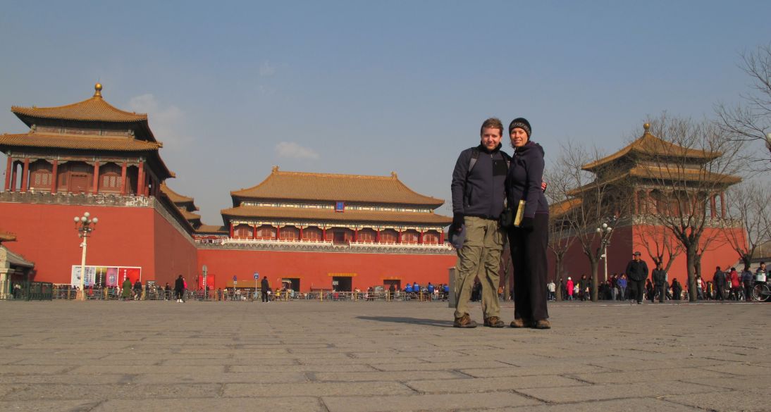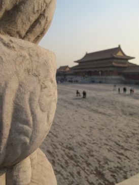 Anyway after we checked in we explored a bit of Beijing, starting off with Tienanmen Square and the Forbidden City. The frozen moat that surrounds and winds through The Forbidden City helped us realise how cold Beijing really is, as if the biting wind wasn’t enough of a reminder. The actual buildings are quite interesting and it’s the complete reverse of most of the stuff we saw in Egypt… it’s much bigger than you expect.