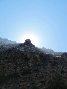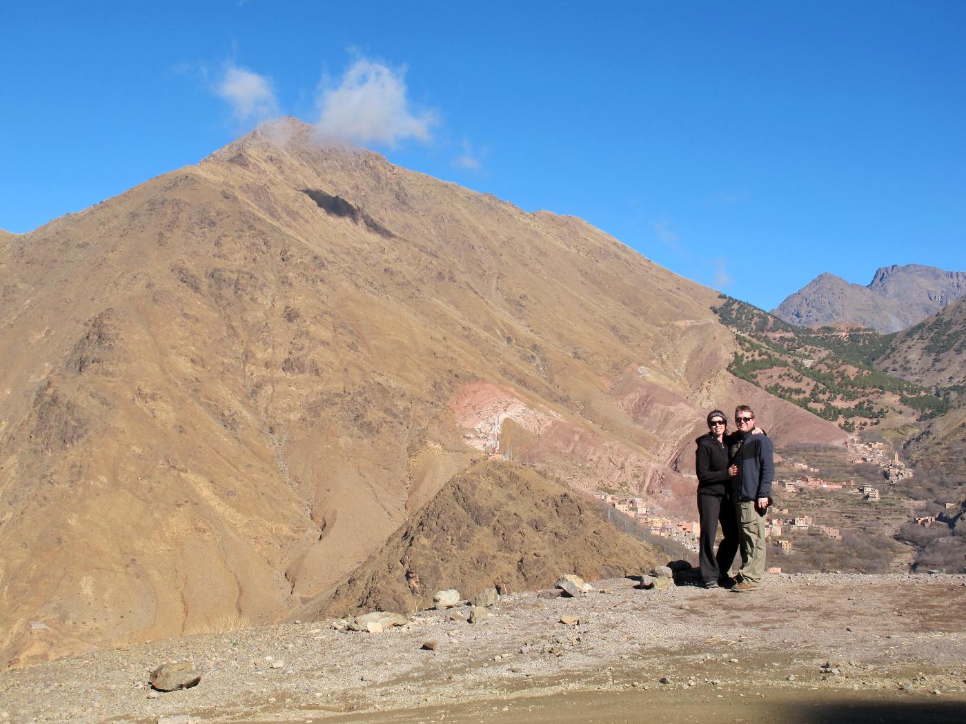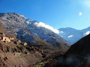 So we hung around waiting hopefully for more tourists to arrive to fill up our grand taxi, and a half full taxi arrived a few minutes later. The mysterious Moroccan taxi driver network had produced some tourists already on their way to Imlil so we both squeezed in the back seat with another couple, while the taxi driver’s wife sat comfortably in the front seat. By the way, the “grand” part doesn’t actually refer to the size of the taxi – they are very tiny. Therefore, we were squashily punished for our tightarse ways for the whole hour and a half trip.